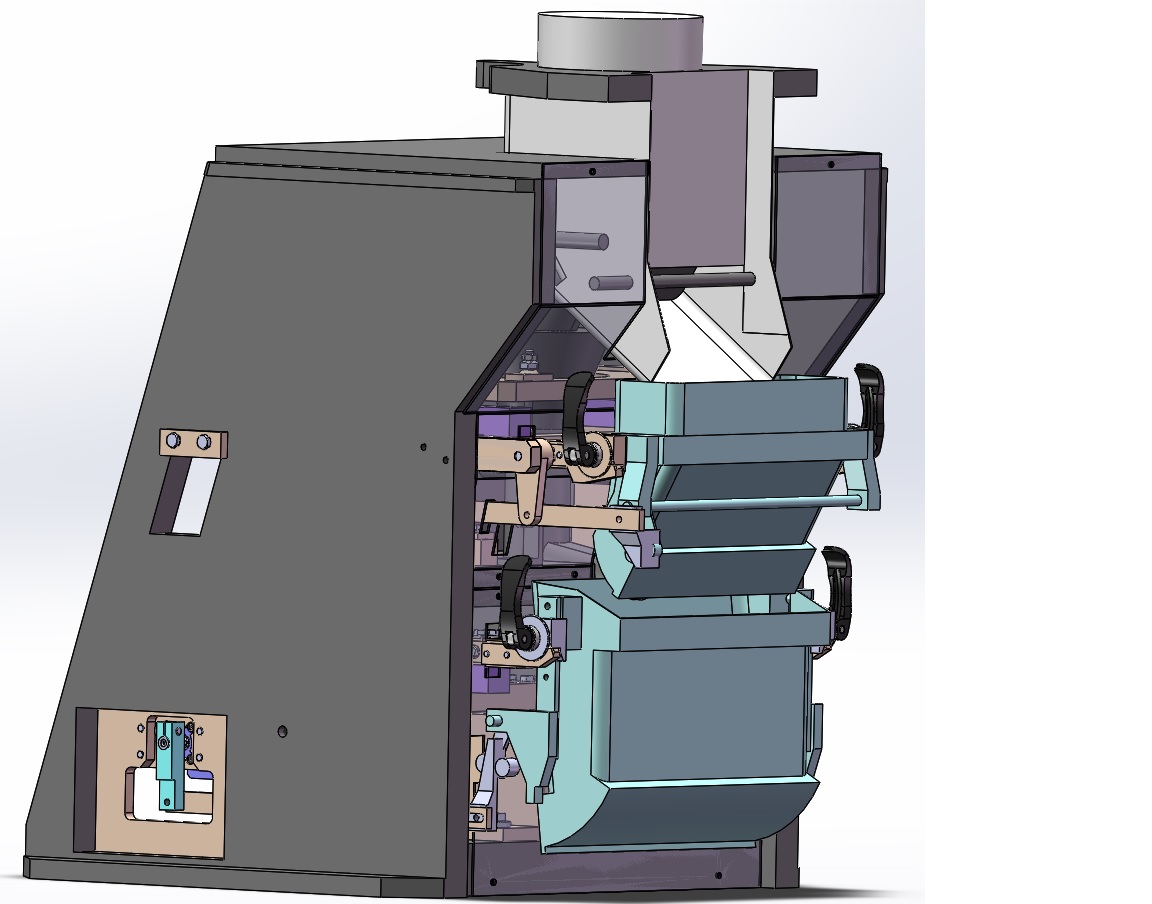 Die 1. Stufe - Vorwaage - kann mit getrennter Grob- und Feinstromklappe ausgestattet werden. Dadurch wird bereits in dieser Vorwaage eine hohe Genauigkeit erreicht.