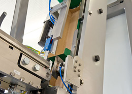 - Der Trayantrieb kommt ganz ohne Saugluft aus und führt die zu füllenden Trays schnell, präzise und sehr energiesparend an der Spendekante vorbei.
